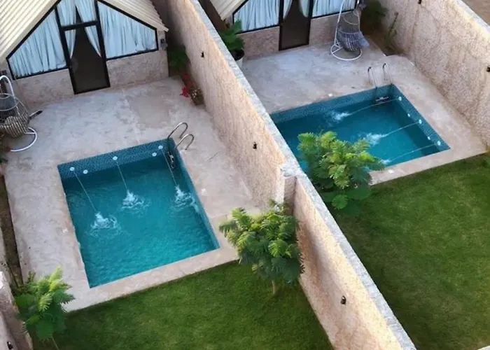 Situé à 4 km de Wahiba, cet établissement شاليه بديه لونا 6-7 Luna Jahis offre une terrasse avec une vue sur la cour.